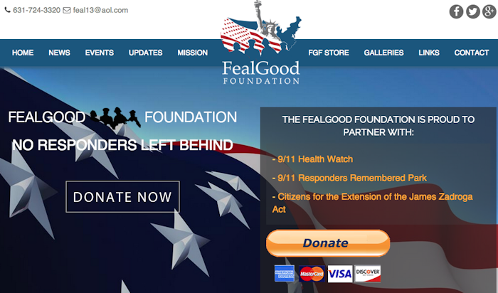 The FealGood Foundation advocates for injured emergency personnel, including 9/11 first responders, who need medical benefits. The founder, John Feal, lost part of his foot while supervising recovery and clean-up efforts after the 2001 attacks. You can donate on the FealGood Foundation’s website.